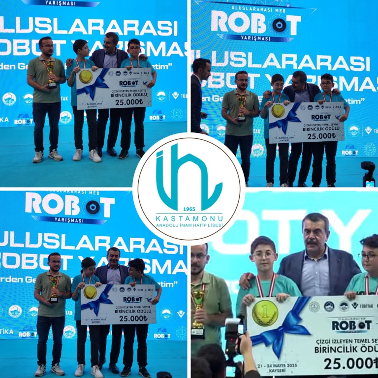 21-24 Mayıs 2025 tarihlerinde Kayseri'de düzenlenen ve Millî Eğitim Bakanlığı tarafından "Köklerden Geleceğe Eğitim, Teknoloji, Üretim" temasıyla gerçekleştirilen 17. Uluslararası MEB Robot Yarışması'nda Türkiye Birincisi olan öğrencilerimiz ödüllerini Millî Eğitim Bakanımız Sayın Yusuf Tekin'den aldı. Öğrencilerimiz, "Tulpar5" robotuyla çizgi izleyen robot kategorisinde Türkiye birinciliğini, "Tulpar4" ile aynı kategoride Türkiye üçüncülüğünü kazandı.